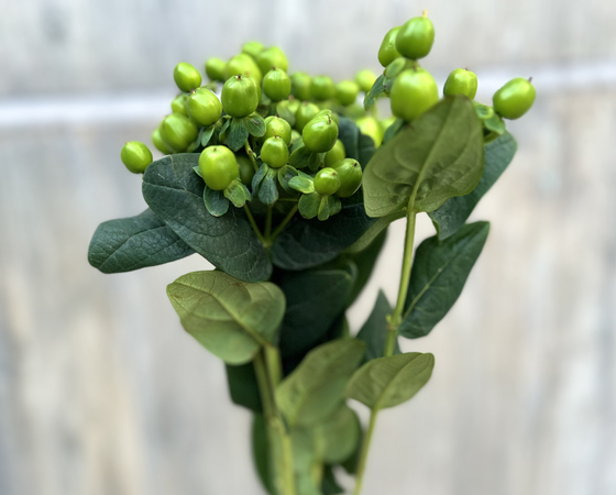 アレンジメントで重宝する、緑のヒペリカムです。