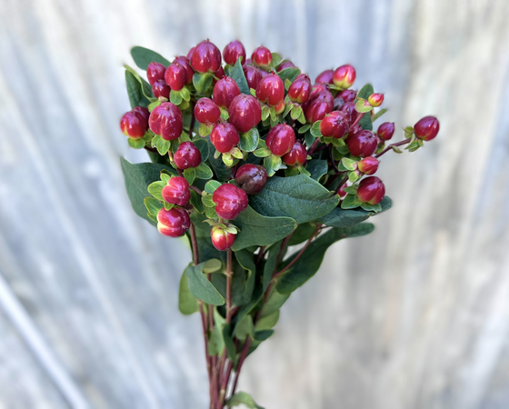 黒みがかった赤が妖しい印象のヒペリカムです。