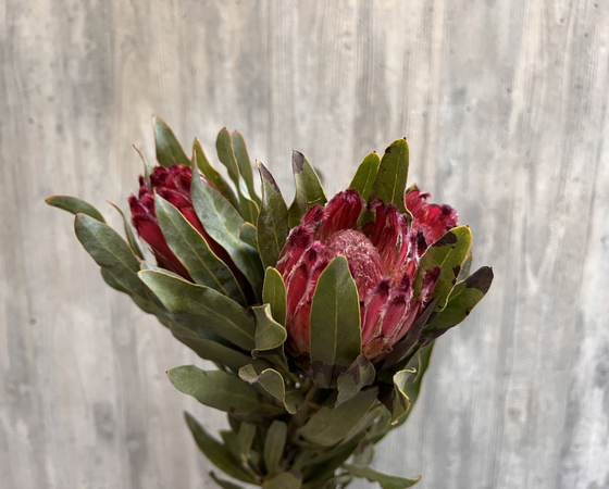 花は大ぶりで存在感があり、花を覆う赤い苞葉は毛皮の様にふわふわとしています。葉もシュッとしていてカッコよく花との組み合わせがとてもインパクトのある花となっています!