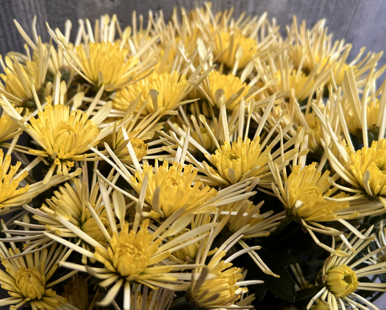 シュッとした花弁が花火の様な糸菊で、薄黄色の花色と合わさりとても可憐な雰囲気となっております!