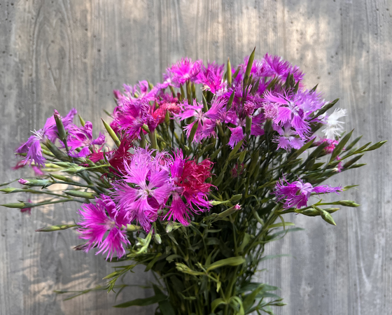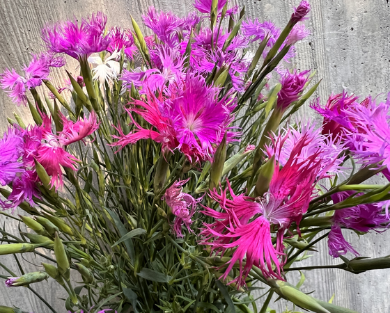 羽のような形状の花弁が特徴的な花で、花色も白から濃いピンクまでと様々な色が入っています!