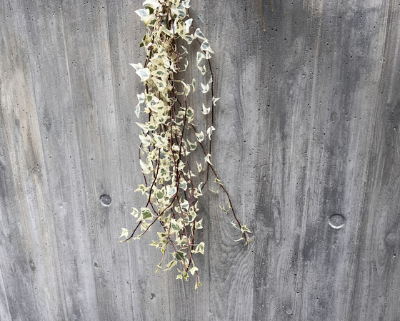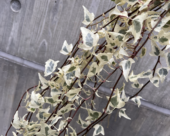 葉は小さめで可愛らしく、真っ白な葉の中心に緑が入っており優しくふんわりとしたアイビーとなっております。