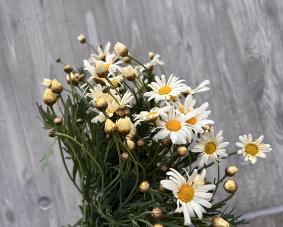 淡いクリーム色の花色が優しくふんわりとした雰囲気をもったマーガレットとなっております。