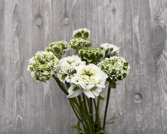 くしゅくしゅと花びらが縮れており、花色も緑に縁が白と野菜のような可愛らしさを持っています。