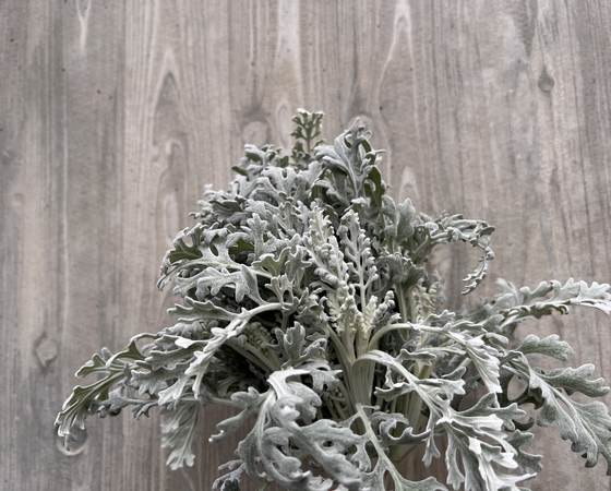 少し肉厚でフロッキー状の葉が特徴的で、白銀色の葉がクールな雰囲気を醸し出しています。