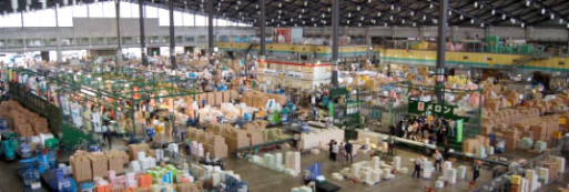 저희 프레스티지는 도쿄의 임해지역 약 40만 평방 미터의 광대한 부지의 시장 내 인근에는 하네다 국제 공항, 동쪽에는 도쿄항, 북쪽에는 철도의 화물기지, 한가운데를 수도 고속 해안(완간)선이 통과하고 있어 물류의 거점으로서 더할 나위 없는 환경 속에서 중도매 업무를 전개하고 있습니다. 또한 거래시장은 일본 최대의 취급규모를 자랑하는 오오타카키를 비롯해 FAJ, 세타가야시장이 있으며 도쿄중앙도매시장의 70%가 넘는 점유율을 자랑하고 있습니다.