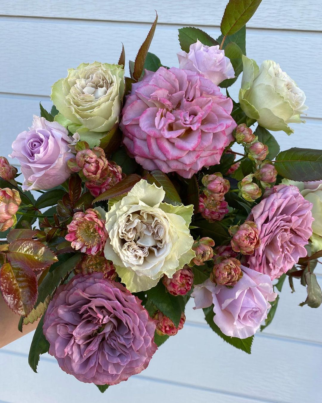 今季の新品種として トルチェット・マンゴーリーバ・ベルベットソップ・パパメイアン等 写真はインスタグラムより、生産商品の花束です。